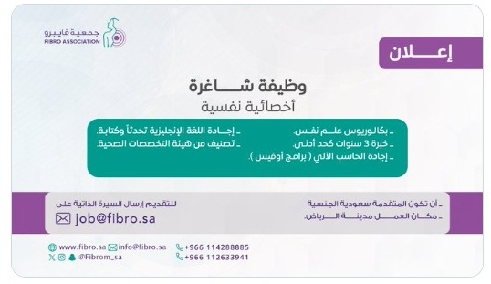 الجمعية الصحية لرعاية مرضى الفايبرو ميالجيا (مسجلة بالمركز الوطني لتنيمة القطاع غير الربحي برقم 5286)